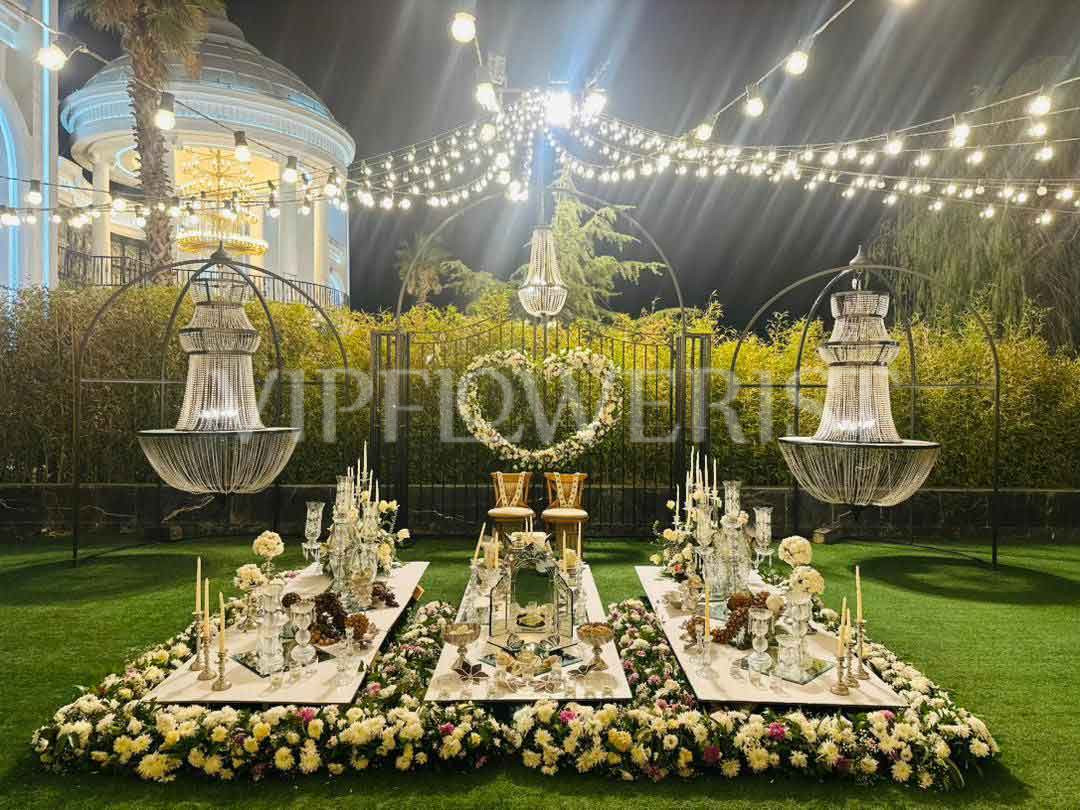 سفره عقد لاکچری در فضای باز؛ ترکیب رویا، گل و نور در یک مراسم خاص
