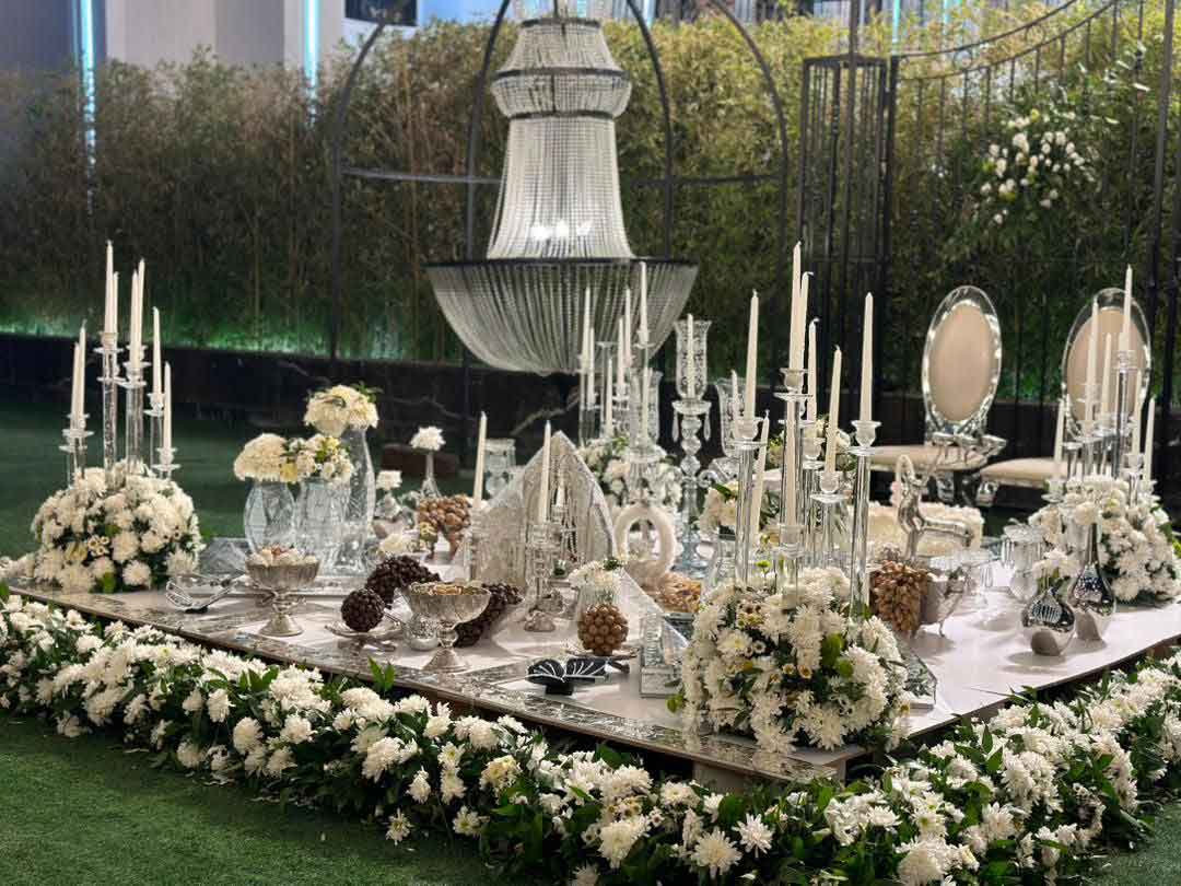 در اجرای یک سفره عقد لاکچری در فضای باز جزئیات اهمیت زیادی دارند؛ از انتخاب رنگ گلها گرفته تا چیدمان شمعدانها، آینه، ظروف کریستال و طراحی بکگراند. در ادامه، مهمترین نکات و ایدههای ترند برای طراحی یک سفره عقد خاص را بررسی میکنیم.
