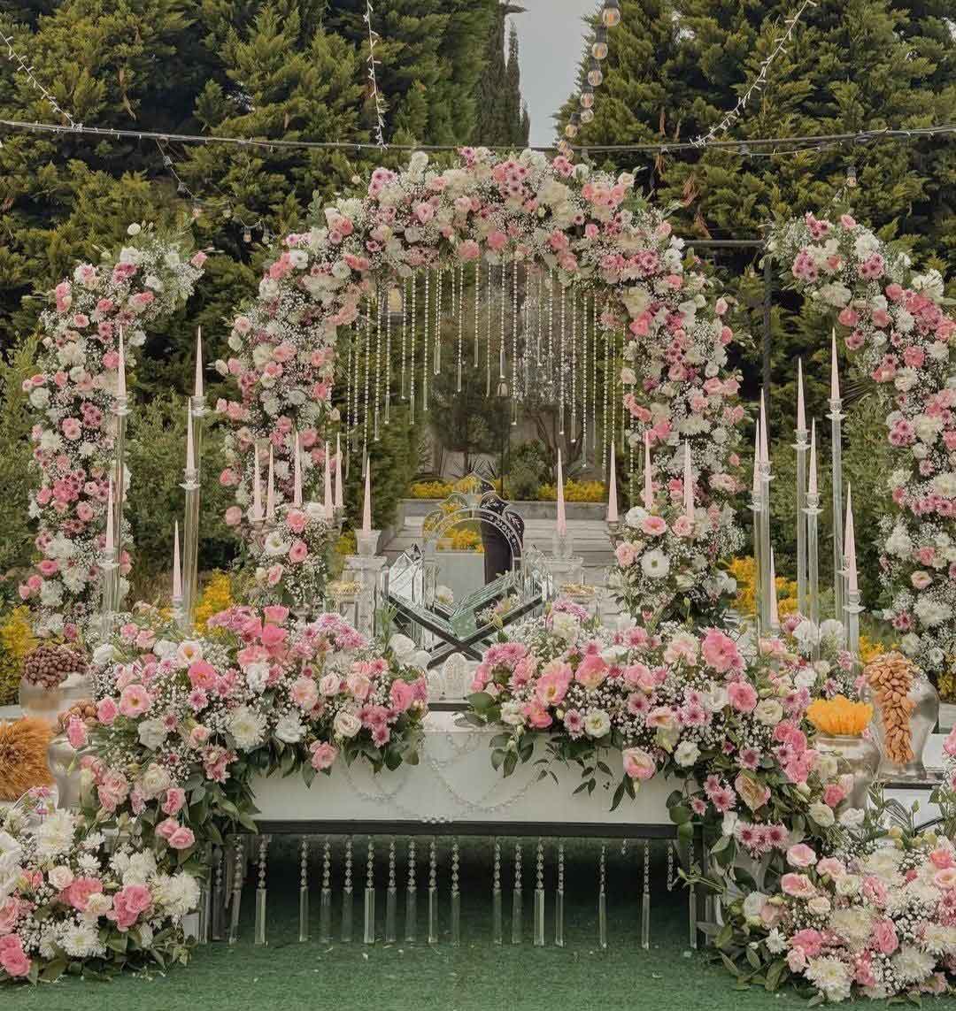 یکی از جدیدترین ترندها، استفاده از آرکهای بزرگ پوشیده از گل و دیزاین لوکس است که هم چشمنواز است و هم فضایی باشکوه میسازد.